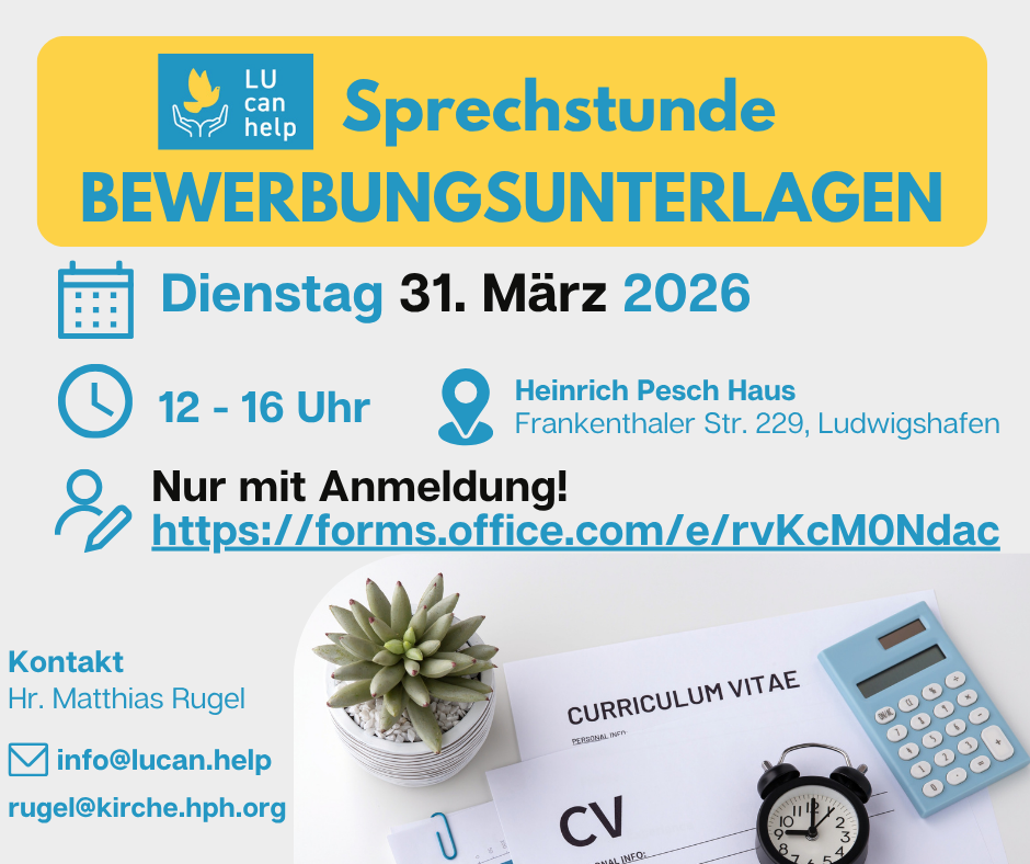 Ab dem 28. Oktober 2025 findet zweimal im Monat die kostenlose Lu can help Sprechstunde: Bewerbungsunterlagen statt. In einem persönlichen Gespräch (ca. 1 Stunde) werden deine Bewerbungsunterlagen – Lebenslauf, Anschreiben, Zeugnisse usw. – gemeinsam überarbeitet und korrigiert. Auch Fragen rund um den Bewerbungsprozess werden besprochen, und du erhältst hilfreiche Tipps. Das Angebot richtet sich an